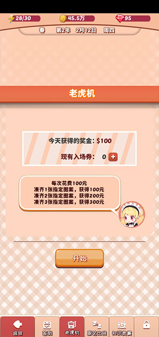 5、前期缺钱的小可爱可以玩游戏,三个金币即可拿300(看广告双倍,一次就是600,每天1次,就是营业一次就可以玩的哈)可以左右滑动的(这里更新版本为幸运机)