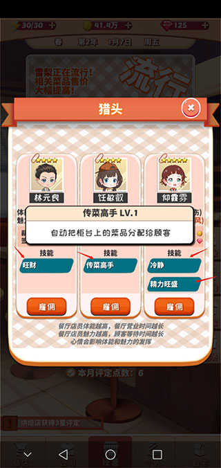 另外茶饮店和烘焙店员工技能是不一样的,有个别的员工技能是两店通用的,所以需要自己找员工的时候看技能那一栏,点击就可以看到技能作用了。