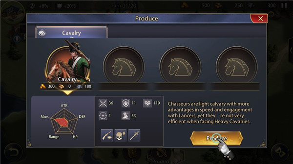 3、直接部队,他们将陪伴您征服者的事业。请升级他们的等级。