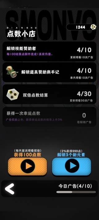 1、简单介绍一下游戏的一些界面和玩法吧,首先右上角的点数可用于点数商店兑换道具2、图上的圆刺球是点数商店,进去就可以看广告获得点数兑换道具
