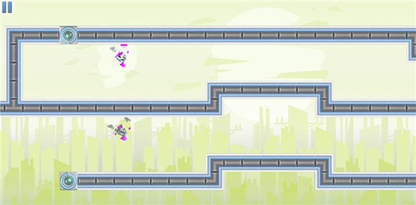 5、经过激光后,我们会分身,难度会直线提升,需要控制两位角色躲避障碍物