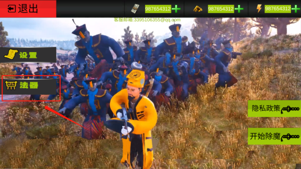 1、在游戏首页,点击法器进入武器商城