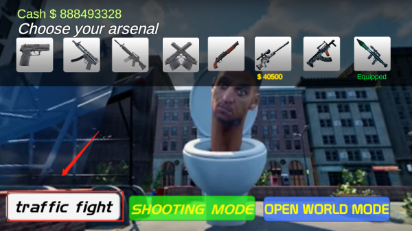 从当快将游戏下载安装到手机后,可在游戏中顶部选择武器,点击“traffic fight”。