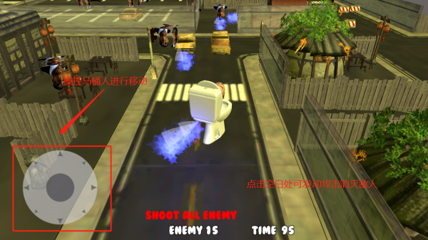 2、对迎面而来的马桶人进行射击击杀,全部击杀即可获胜