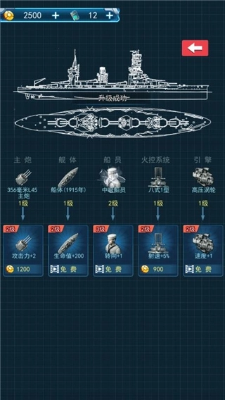 5、玩家还可以对当前的战舰进行升级,使得各方面能力提升