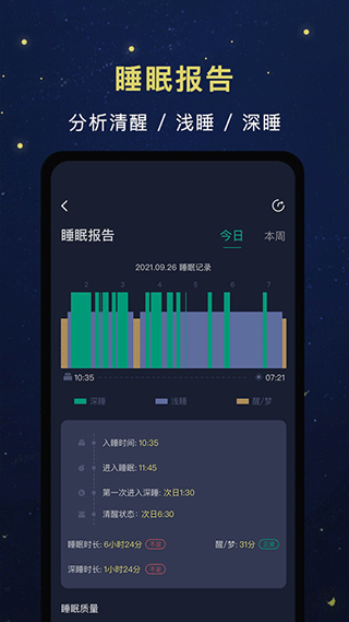【睡眠监测】闹钟提醒 记录睡眠【睡眠报告】分析清醒/浅睡/深睡