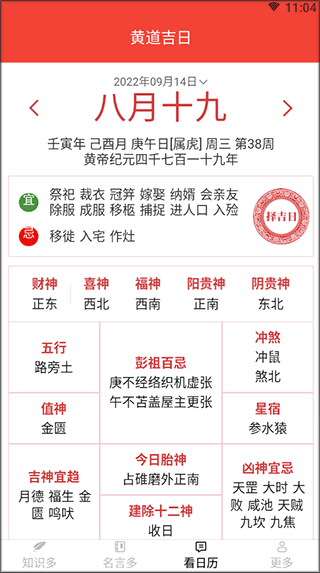 3、点击看日历,你能详细的了解到那天是吉日或忌日。