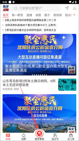1、下载指尖沈阳app并打开,在导航栏中选择“盛京使者”;