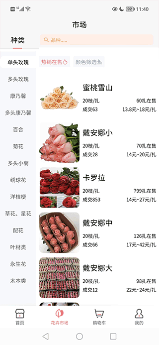 1、专门为广大花店打造的鲜花批发平台。2、该平台提供的鲜花种类非常的齐全。