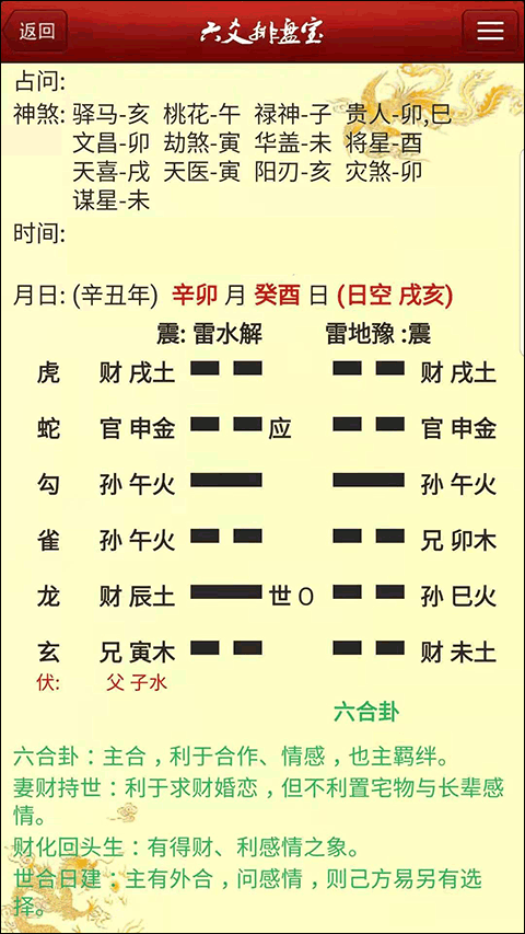 排盘好了我们就可以看见我们卜卦后的结果了。