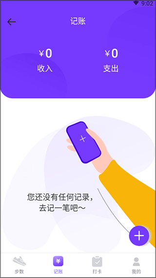 2、点击记账你可以在这里进行记账来记下的的收入和支出。