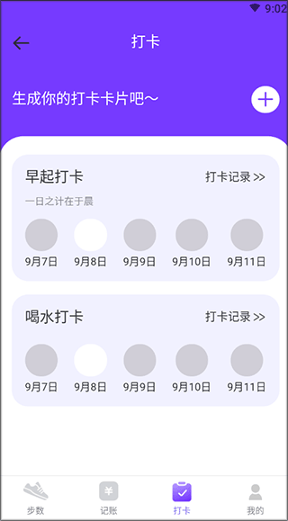 4、目标打卡,精选健康目标,助你养成健康习惯。