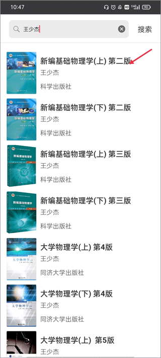 3、用主编人名字搜索会看有很多他负责编辑的教材,选择要添加的教材并点进去。