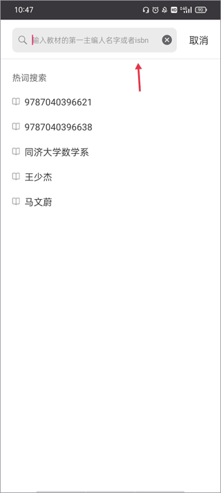 2、会看到一个搜索框,只需在其中输入教材首编者的姓名或ISBN,即可找到所需的教材。