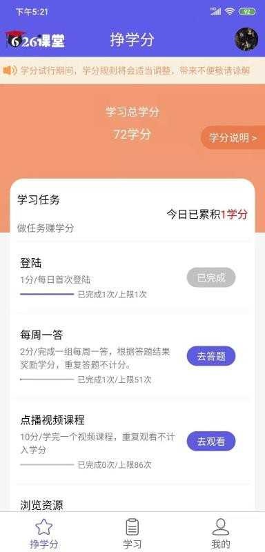 -学分赚取更容易,实时浏览到挣学分的攻略;