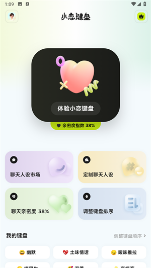 1、打开小恋键盘app,进入首页,可以直接去体验小恋键盘。