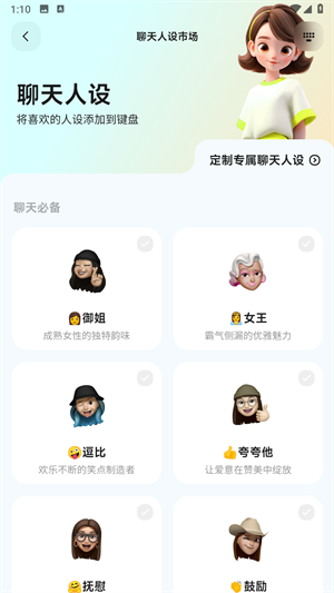 2、可以直接添加人设,或者定制人设。