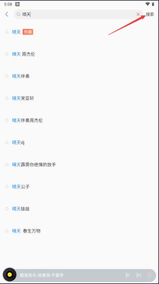通过软件上方的搜索栏输入关键字词,快速获取心仪的歌曲内容。
