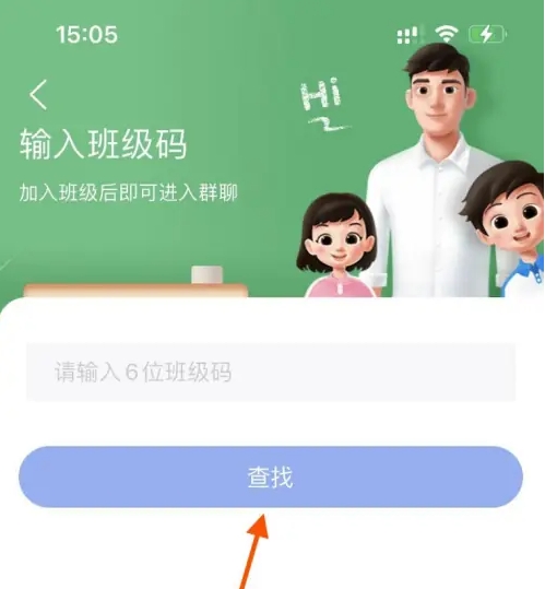 在页面中输入6位班级码,点击【查泰摸找】即可加入。