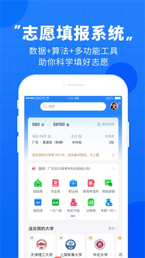 全新升级的志愿系统,找大学、查专业分数线和招生计划操作体验更便捷,并且新增了相近院校分数线对比,就业质量分析报告等,通过对比可以更准确进行填报。