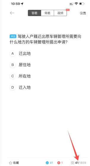 1、在驾考宝典做题的页面里,点击右下角的题目数量。