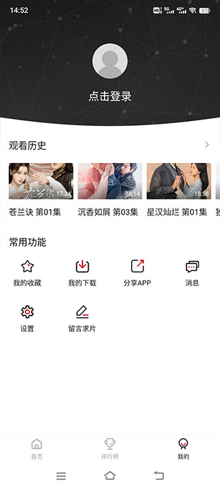 4、在“我的”页面,不用登录即可查看最近观看历史记录,随时随地方便下次续播!