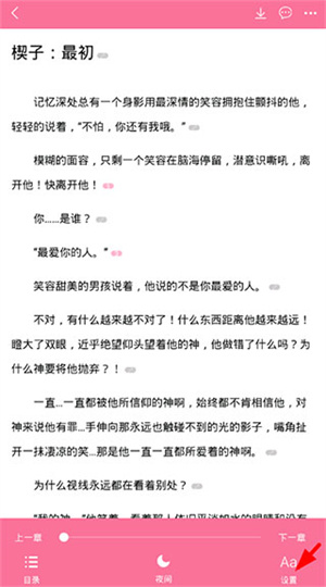 3、然后在阅读小说的页面中,通过点击屏幕中央,选择出现列表中的设置功能,就可以对小说阅读界面进行设置;