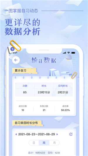 -清晰展示你的日/周/月专注时长、打卡次数等