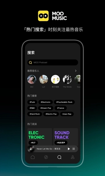 MOO音乐内测版是一款拥有丰富资源的音乐播放软件,它汇集了国内外最受欢迎、最具代表性且用户众多的歌曲。该软件支持在线免费收听和下载,并能提供高品质的音频体验。