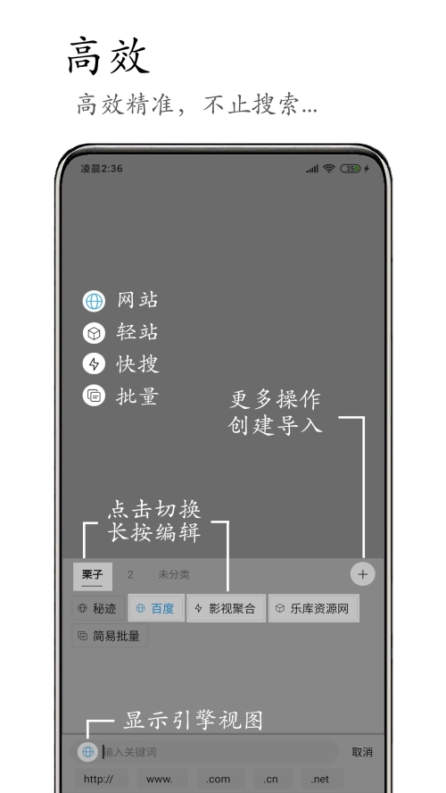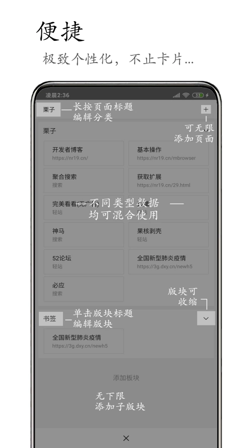 2、支持自定义手势,自定义的手势可以帮助浏览器进行翻页和刷新。