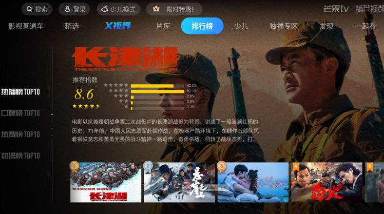 a、片库中视频资源丰富,在排行榜中可以看到有热播榜、高评分、热搜榜等视频资源;