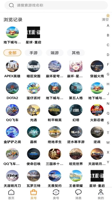 3、从而方便用户选择游戏名称任意查找喜欢的游戏账号资源;