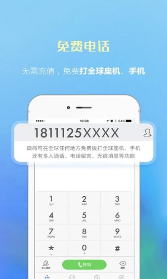 5、免费拨打全球任意手机、座机,对方无需安装微微电话。