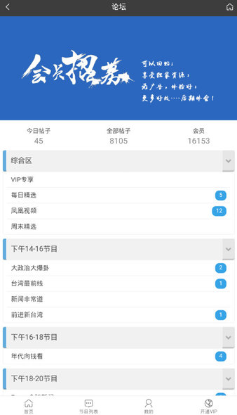 旗米拉论坛更新版 是一个免费浏览最完整的台湾电视节目和新闻资讯的平台。为用户提供最新最热门的新闻动态,还享有qimila.vip免费特权,可以观看所有栏目,参与社交互动,更多丰富内容尽在旗米拉论坛台湾手机版!