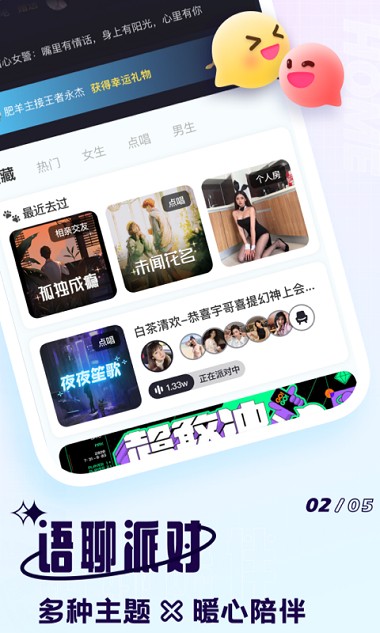 语聊房间:派对房、恋爱房、K歌房等个性房间,寻找心动的TA!