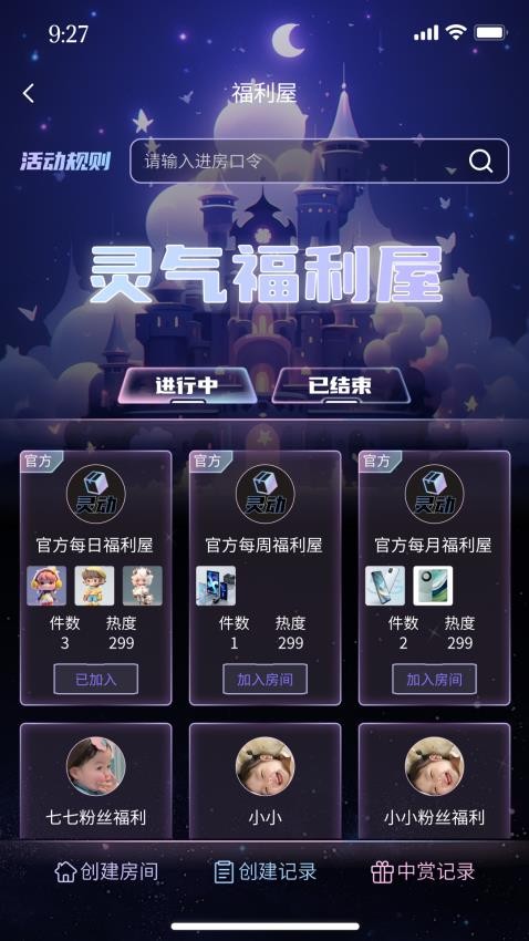 加入福利房间获取各种奖赏之后查看记录了解自己的中赏情况;