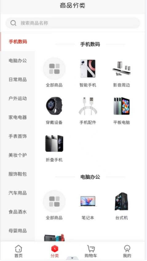 4.用户可以进入分类主页中根据商品类型来查找所需商品。