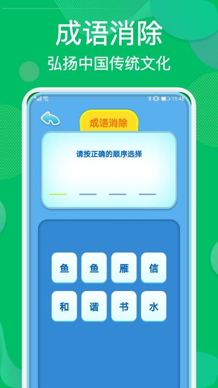 通过排列顺序的方式回答出正确的成语内容,学会正确的成语写法