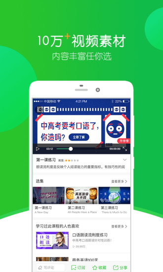 你可以通过设定英语水平、管理视频模块来更改首页推荐,最快找到适合你的视频学习资源、高效率地学习口语!
