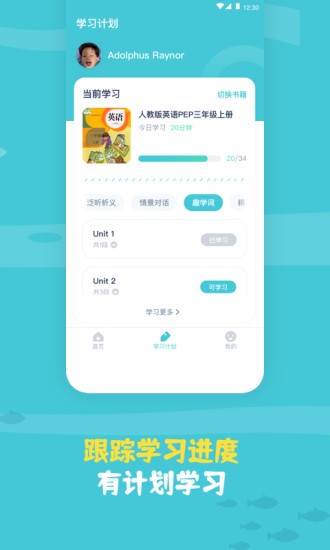 多场景学习方式,泛听析意、精听跟读、随书测试、轻松记单词,书籍章节内容同步学习,哪里不会扫哪里。