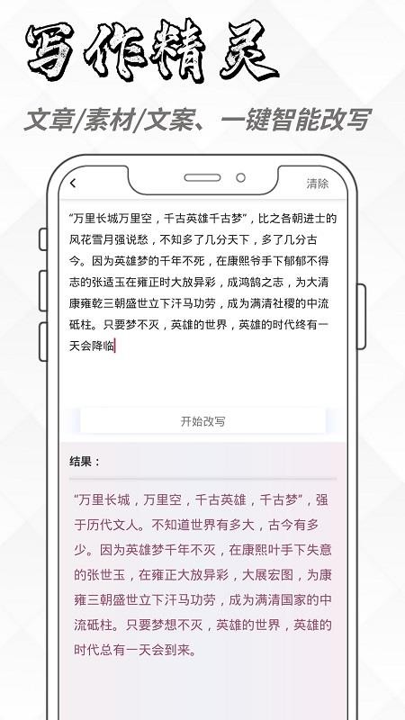 还能在线一键智能改写你提供的文字素材