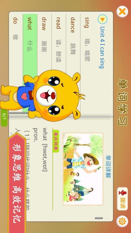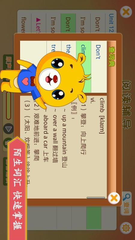 有卡通图片和单词详细词典解释,方便孩子快速掌握所学单词。