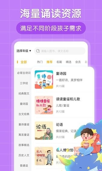 朗朗书声是一款优秀的儿童学习应用,提供丰富的教学资源。跟随名师朗朗曼学习朗读技巧。有来自中央电视台、中央广播电台等机构的30多位著名语言学专家进行阅读指导和评论。普通话由专家现场监督,确保发音标准,声音洪亮,情感真挚,讲解生动自然。美妙的声音为孩子们带来最愉悦的听觉体验。