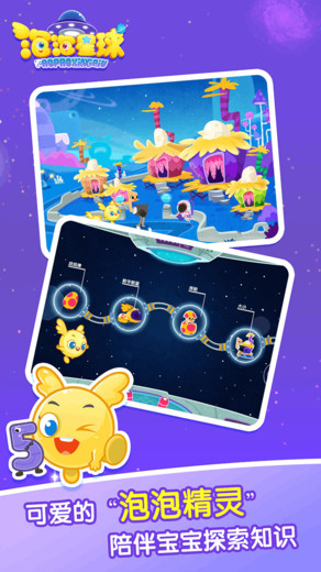 “泡泡星球”由网趣宝贝荣誉推出。网趣宝贝拥有超过50款儿童APP,自主研发了超过700个多媒体互动课件,总下载量超过3000万,活跃用户超过300万,多次获得苹果商店的编辑推荐。“泡泡星球”由近百名具有二十年以上早教经验的教师精心打造,具备最专业的幼儿教育知识体系,定期更新内容,将教育与娱乐相结合,不断为宝宝带来新的知识收获。