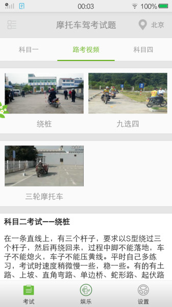 包括绕桩、九选四等路考视频,助您早日成为摩托车驾驶员!