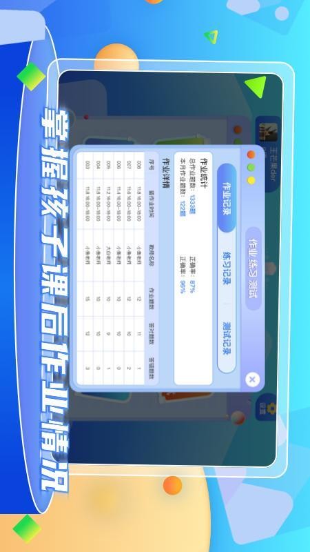 保存孩子实时的测试记录信息,方便家长能够清楚的洞悉孩子日常训练情况
