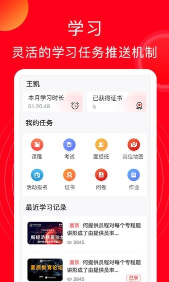 北京公交的云课堂APP拥有非常丰富的移动学习系统,还具备考试功能。它包括智慧考试和智能监考,并且有一套非常灵活的学习任务推进机制,帮助你更好地掌握知识。