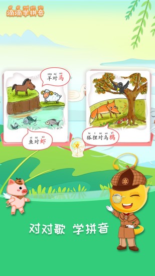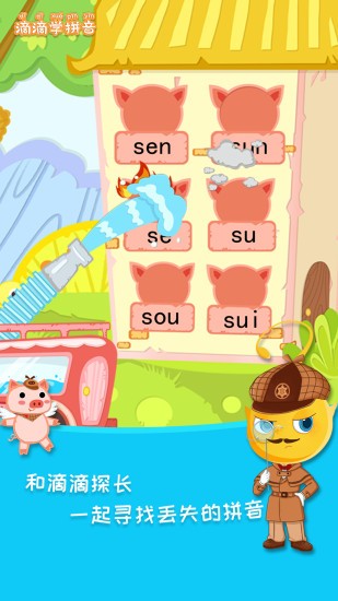 滴滴学拼音手机版通过衔接前期的拼音学习,将宝宝需要掌握的复韵母、单韵母、声母等内容,融入到精心设计的侦探故事里。在简单有趣的故事和游戏中自然掌握拼音。我们还创作了朗朗上口的对歌,配以古诗的韵律,使宝宝在学习过程中自然学会拼音、识字,并感受文化的魅力。