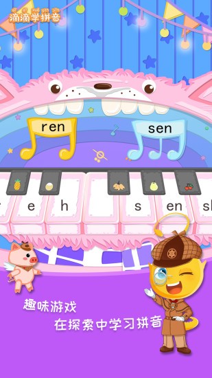 滴滴学拼音免费版 通过动画教学帮助幼儿更好地学习拼音,特色游戏使拼音能够实际应用,在轻松的氛围中学习汉字,专项板块制定适合孩子的学习计划。