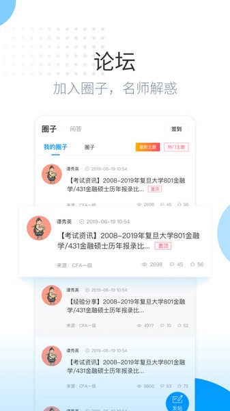 3.新增论坛功能,加入圈子跟同学们一起讨论问题,学习中的疑问有专业的老师给你解惑;